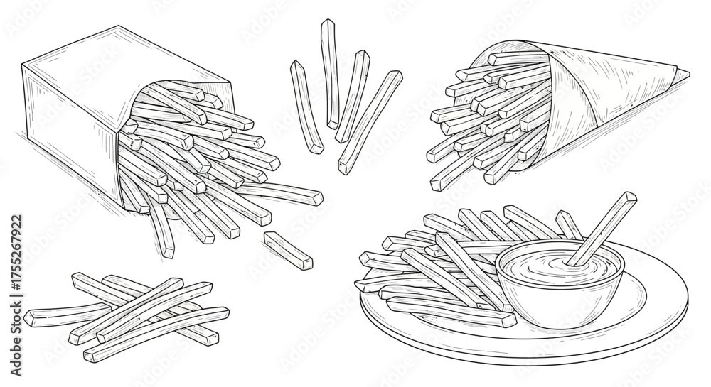 Tableau sur toile Delicious hand-drawn french fries collection showcasing various servings, perfec
