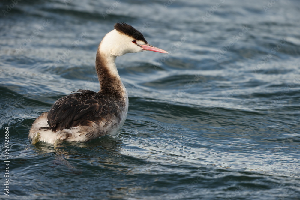 Tableau sur toile The great crested grebe (Podiceps cristatus cristatus) is a member of the grebe family of water birds