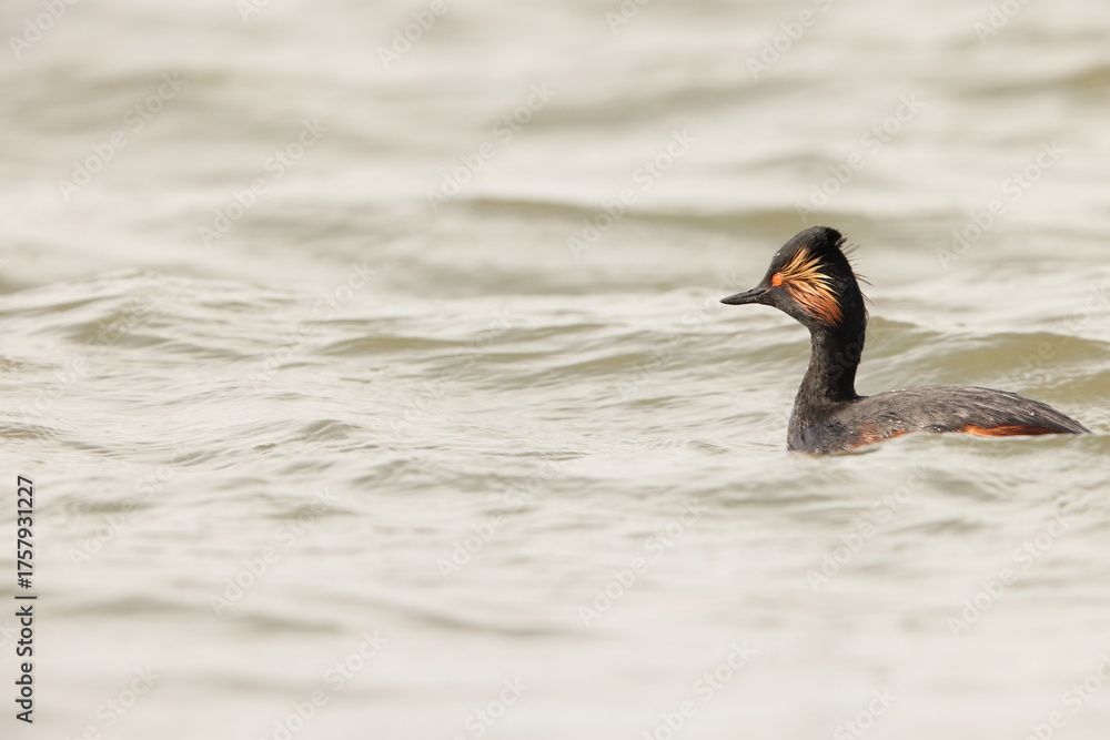 Tableau sur toile Eurasian black-necked grebe or eared grebe (Podiceps nigricollis nigricollis) is a member of the grebe family of water birds