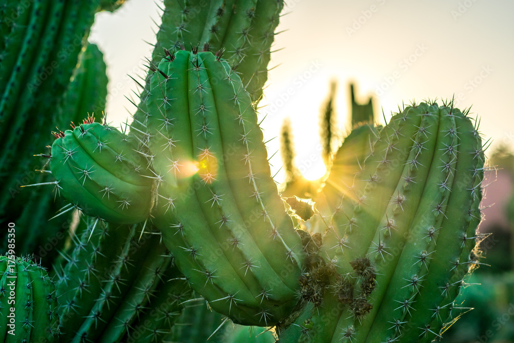 Tableau sur toile Atardecer en medio de un cactus