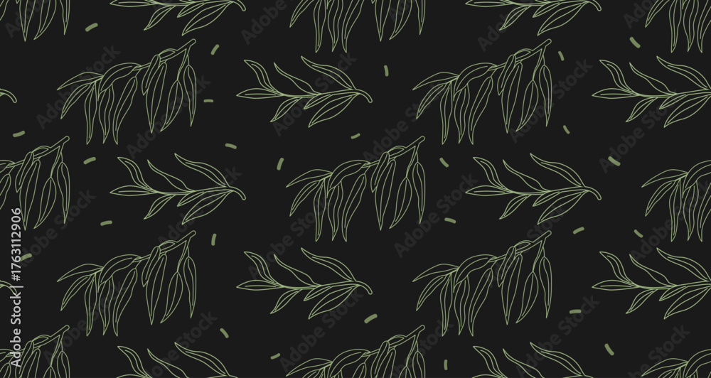 Tableau sur toile Outline drawing of leaves isolated on a black background