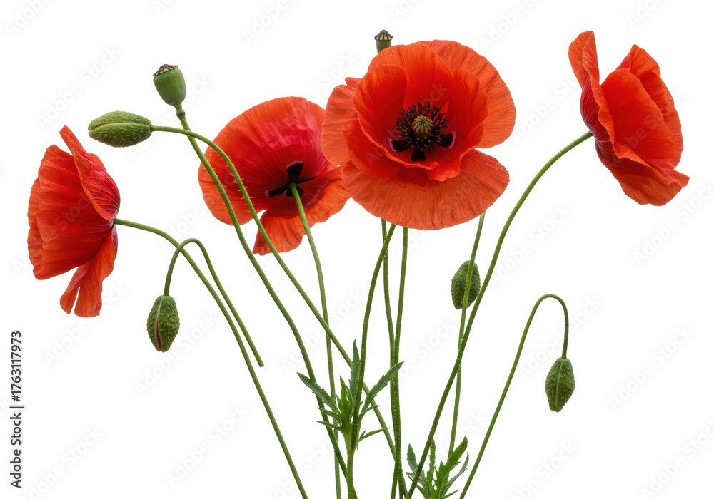 Tableau sur toile Vibrant red poppy flowers isolated on a clean background, delicate floral arrang