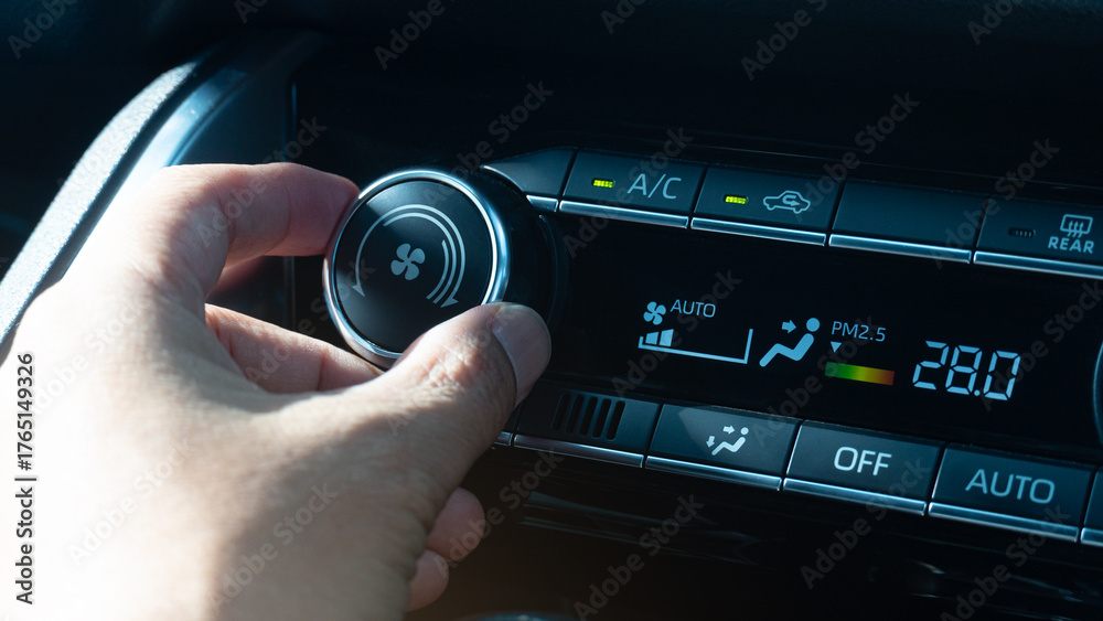 Tableau sur toile Man hand adjusting the temperature of a car climate control panel