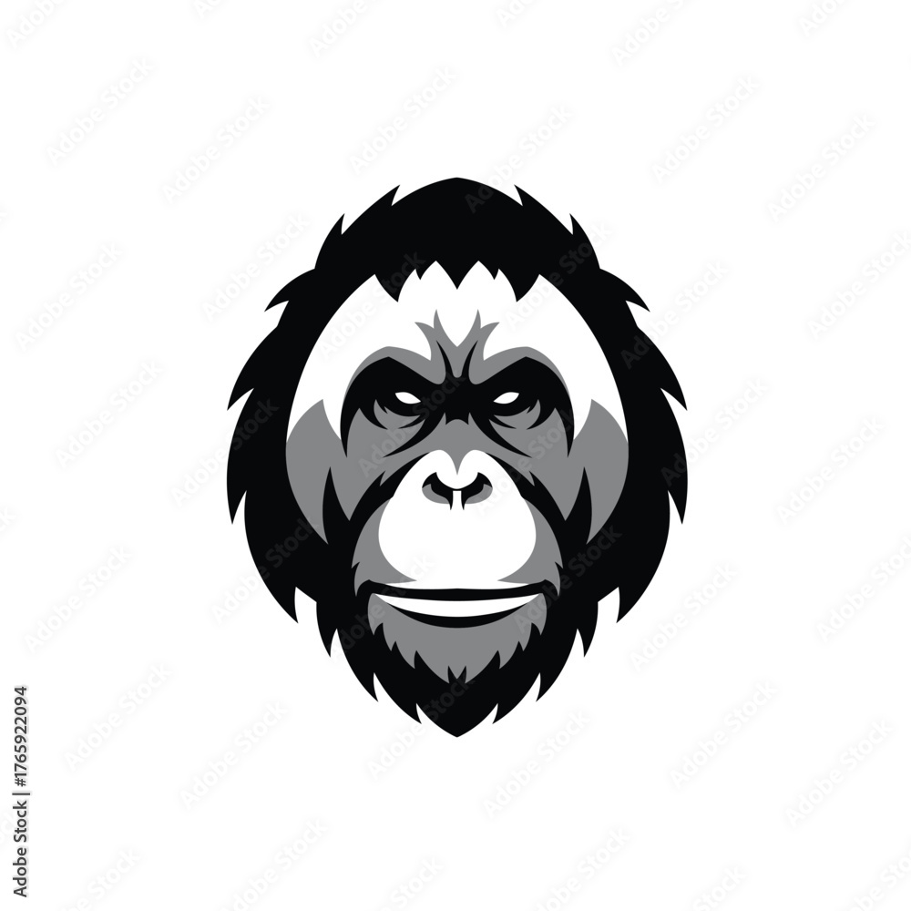 Tableau sur toile Black and white orangutan face graphic logo primate