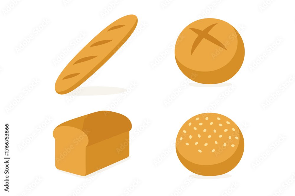 Tableau sur toile Variety of baked bread products: baguette, loaf, and assorted rolls