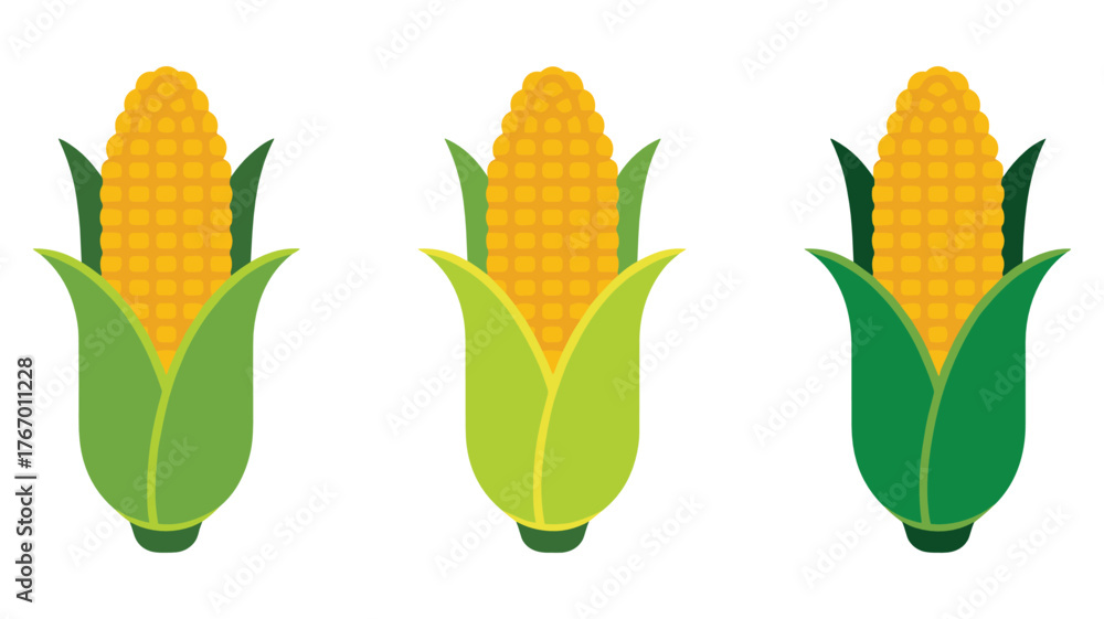 Tableau sur toile Three ears of corn with green husks on a white background maize ear of corn