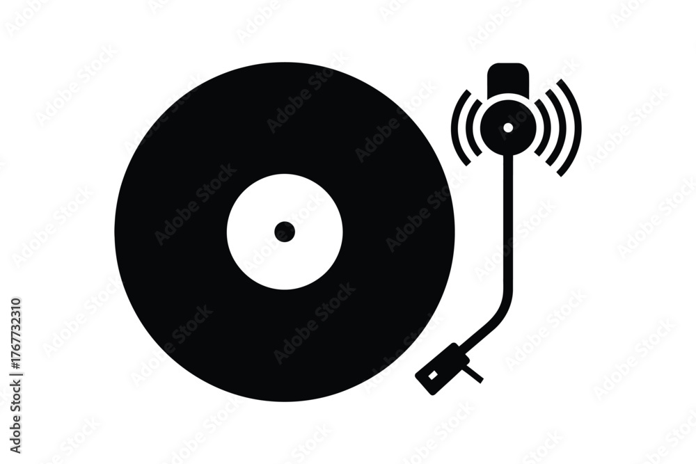 Tableau sur toile Stylized icon of a vinyl record player with sound waves
