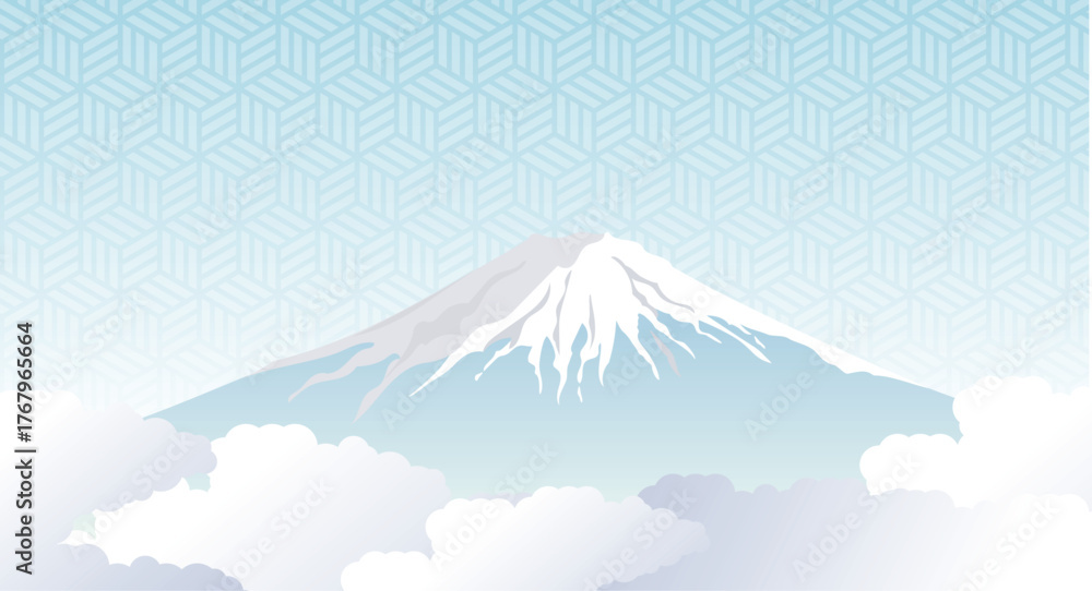 Tableau sur toile 富士山, 年賀状, 山, お正月, 晴天, 快晴, 和風, 和柄, 美しい, 世界遺産, 登山, 風景, 景色, 手書き, ベクター, アート, グラフィック,