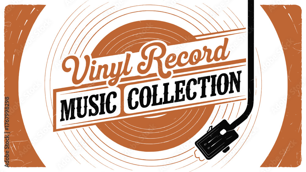 Tableau sur toile Vinyl record music collection retro poster with turntable stylus groove analog s