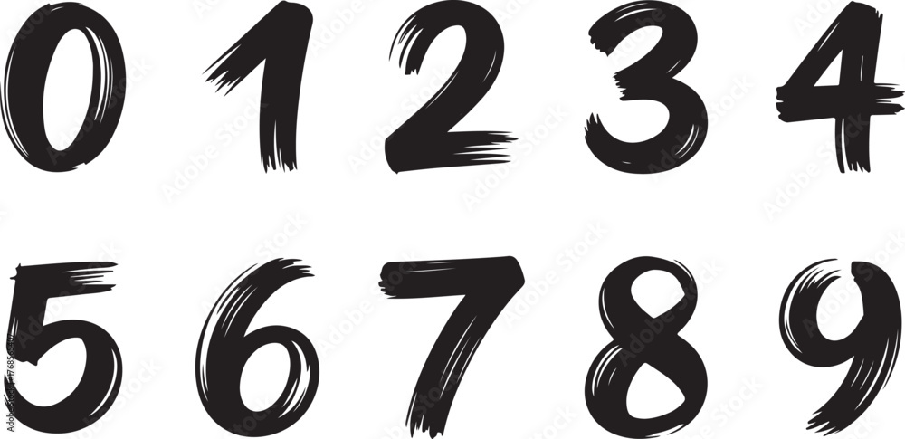 Tableau sur toile Brush stroke numbers set 0-9 hand drawn textured vector