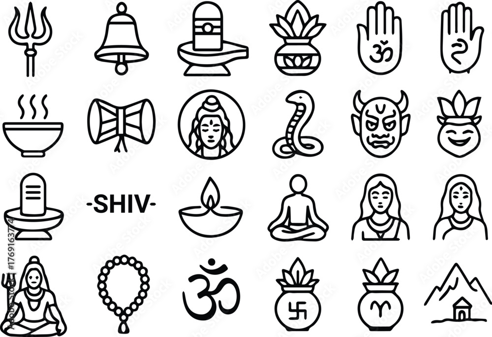 Tableau sur toile Collection of hindu god shiva symbols and icons for religious and spiritual use