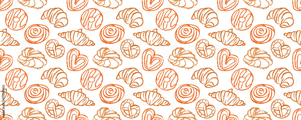 Tableau sur toile Crayon croissants, pretzels and donuts on white background