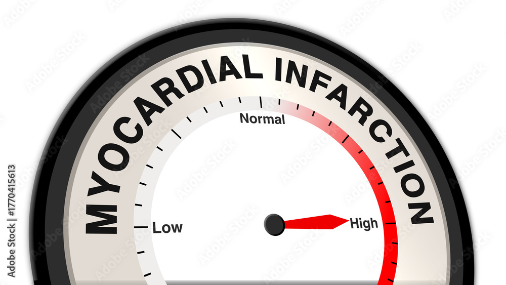 Tableau sur toile Myocardial infarction at high severity displayed on a barometer or tachometer, i