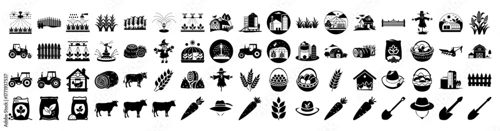 Tableau sur toile An assortment of farming icons representing crops, livestock, machinery, and far