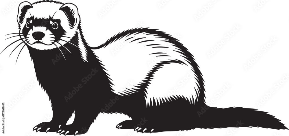 Tableau sur toile Adorable ferret illustration black and white cute pet animal drawing for animal