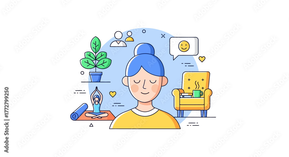 Tableau sur toile Concept illustration of a woman practicing mindfulness and self-care for mental