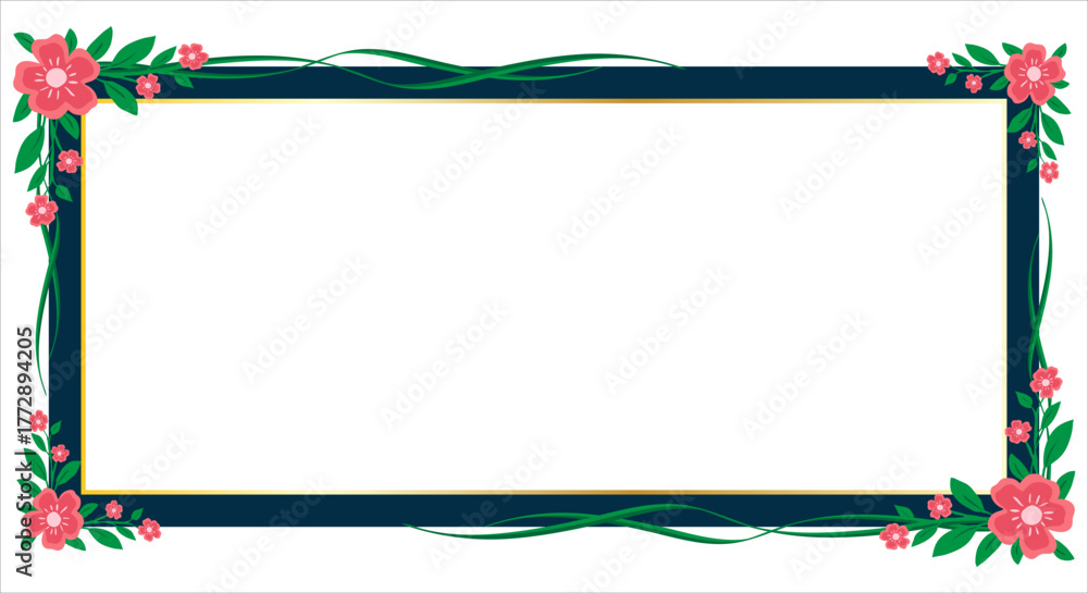 Tableau sur toile Blue frame with elegant floral decoration on white background