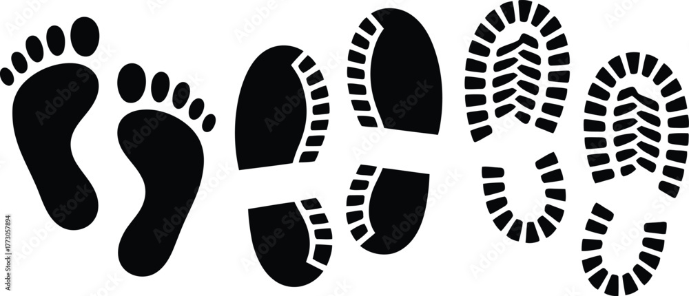 Tableau sur toile Footprint icons of bare feet and shoe tracks