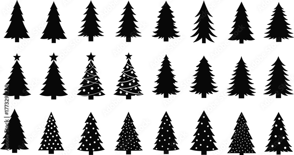 Tableau sur toile PrintChristmas tree silhouettes, black vector trees, holiday icons, festive deco