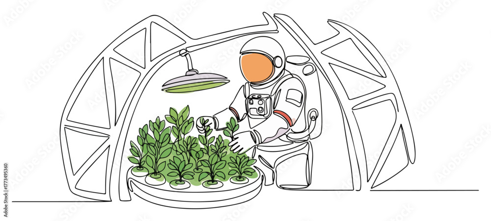 Tableau sur toile Astronaut watering plants in space station greenhouse