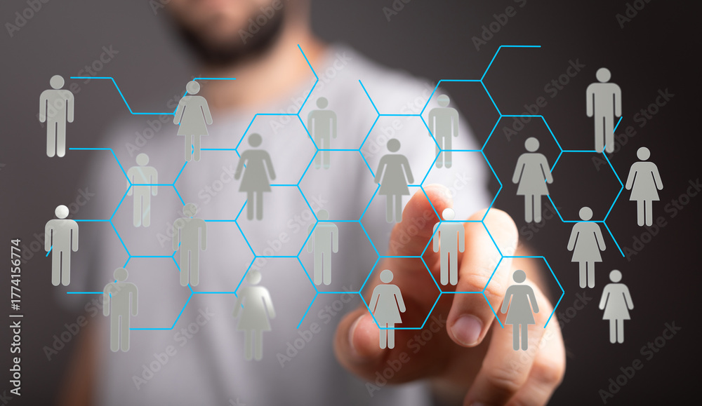 Tableau sur toile Abstract conceptual image depicting social networking and the interconnectedness of people using a digital interface