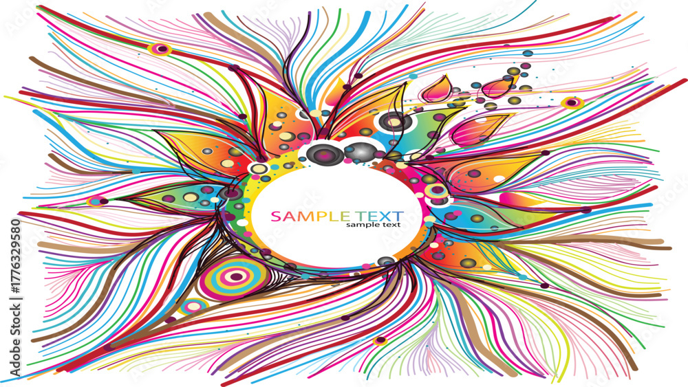 Tableau sur toile Vibrant abstract floral design with colorful swirling lines and a central white