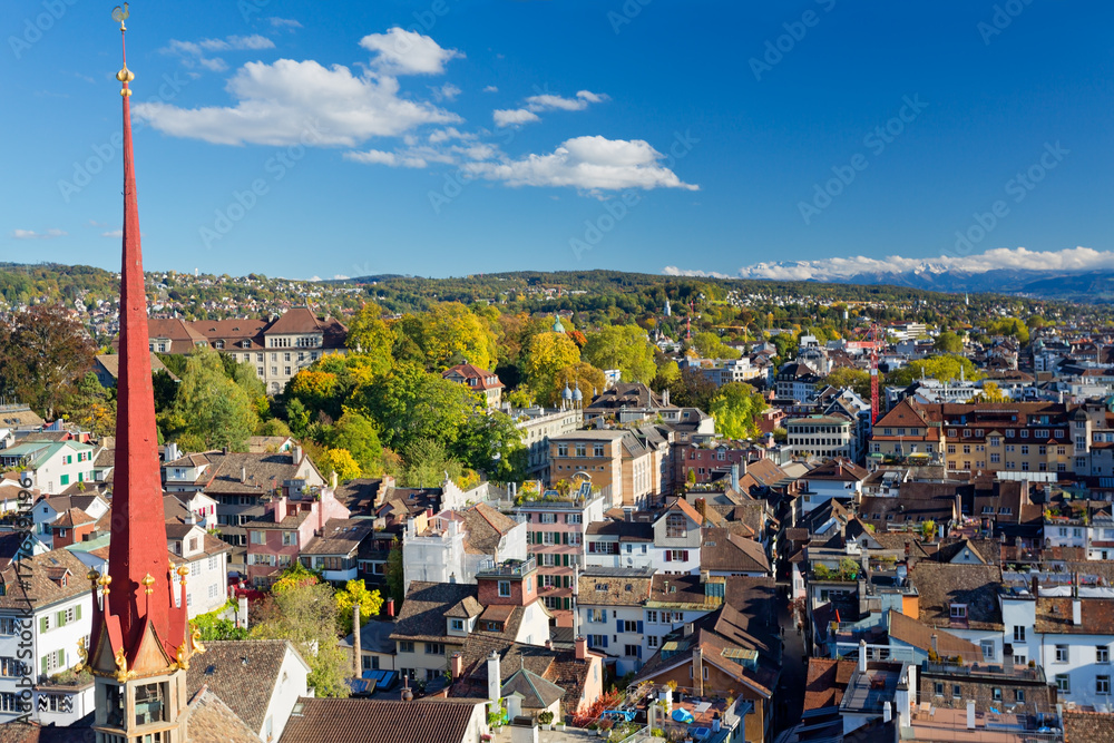 Tableau sur toile Panoramic view of Zurich city, Swiss Alps, Switzerland