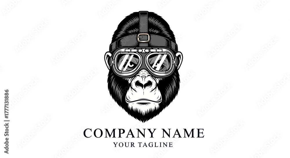 Tableau sur toile Gorilla Aviator - A Detailed Black and White Illustration of a Primate Pilot
