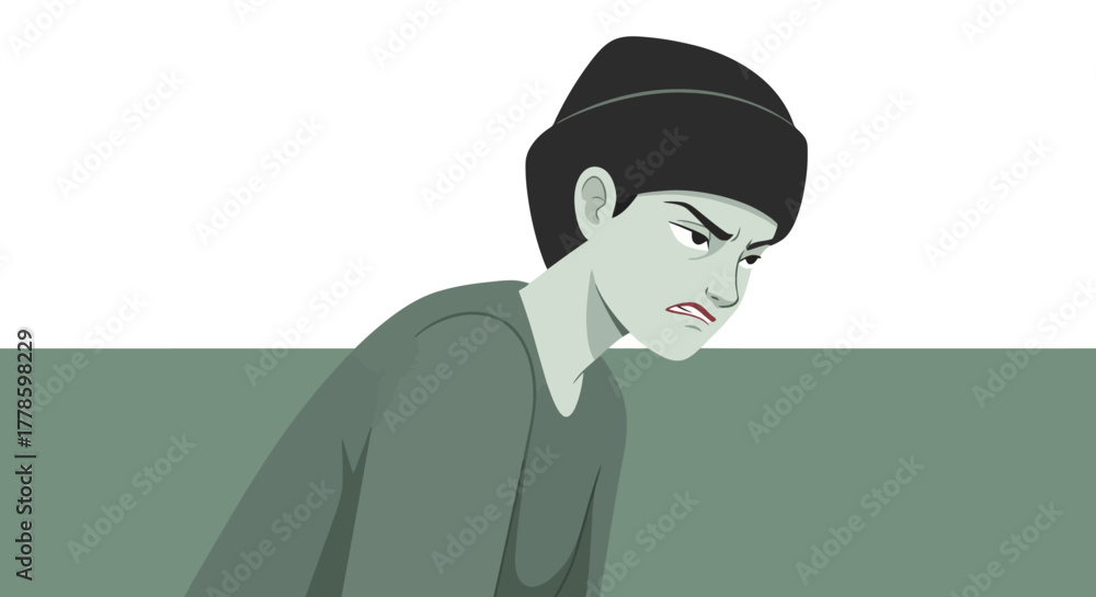 Tableau sur toile Angry Young Man in Beanie Hat Expressing Frustration and Disappointment Illustra