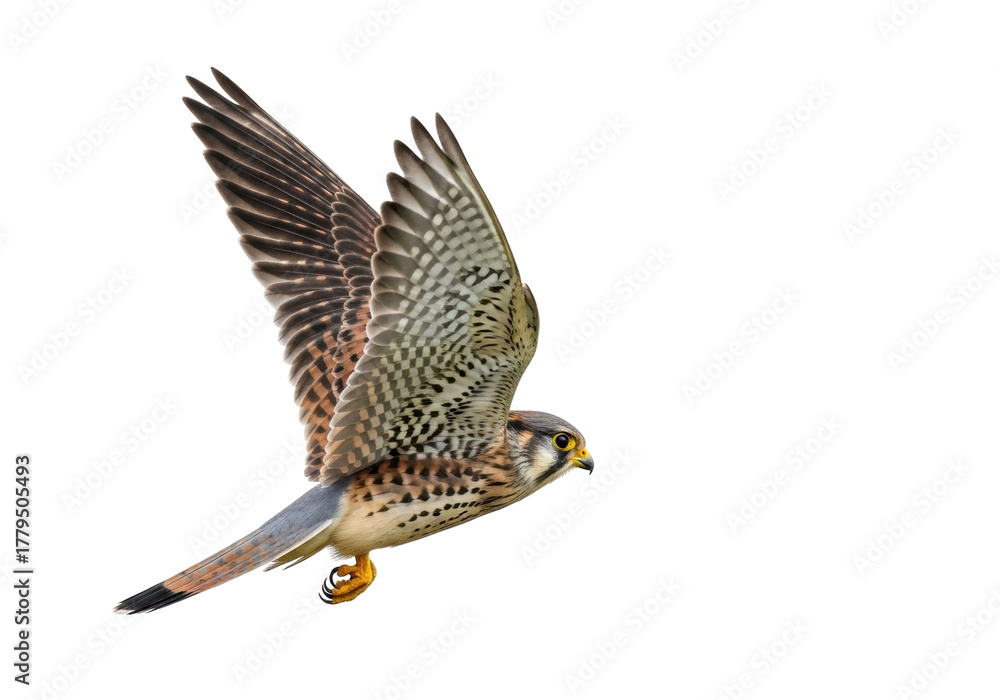 Tableau sur toile American kestrel flying PNG isolated on transparent background, small falcon wit