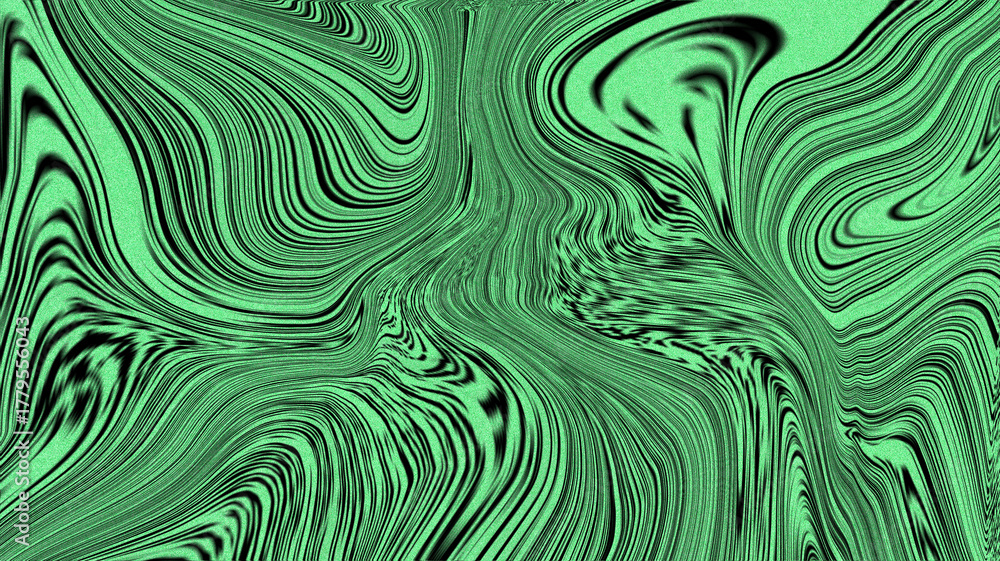 Tableau sur toile Fluid green abstraction with black flowing lines creating a swirling pattern