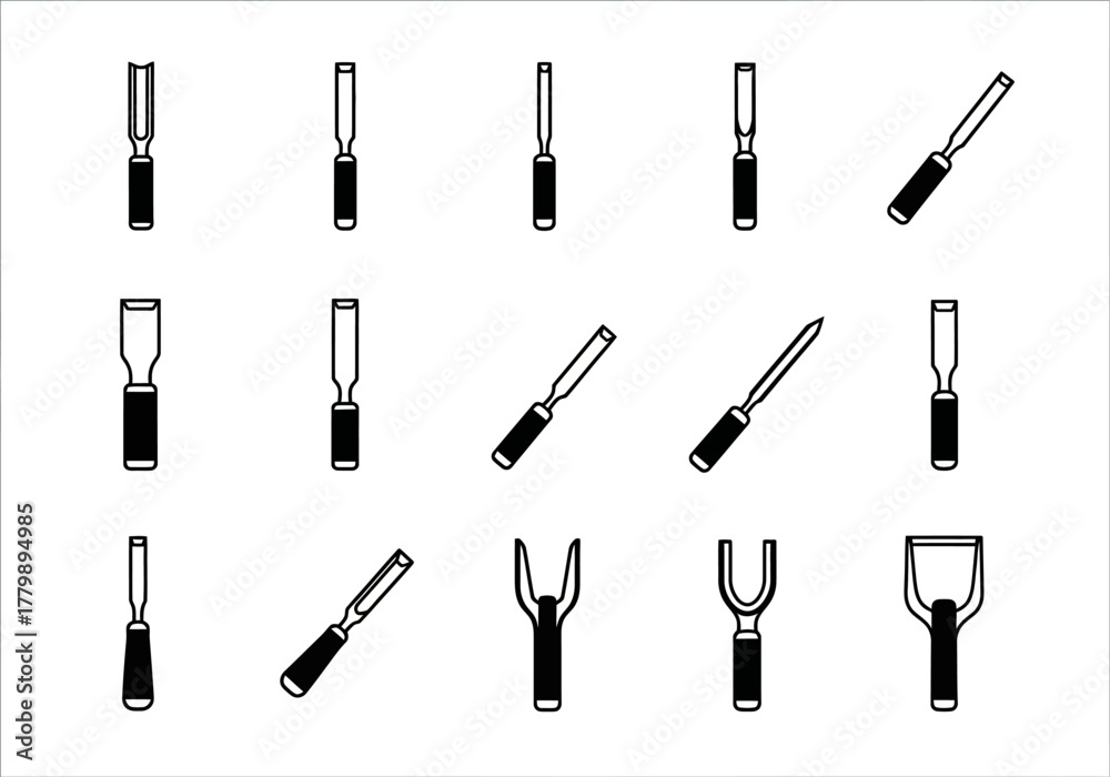 Tableau sur toile Icon set of various chisels and gouges for woodworking