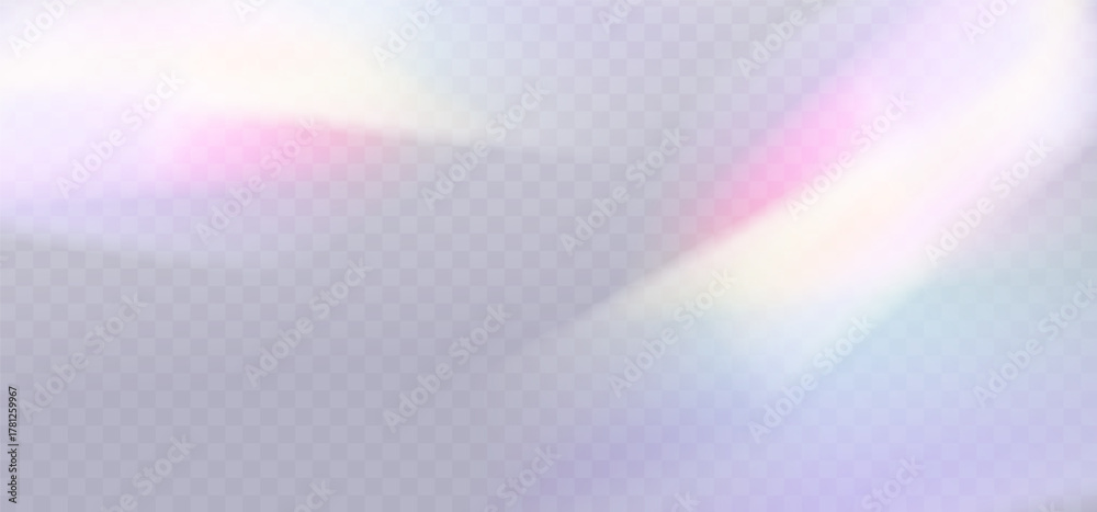 Tableau sur toile Crystal glass prism with holographic reflections and rainbow flare on a transparent light background