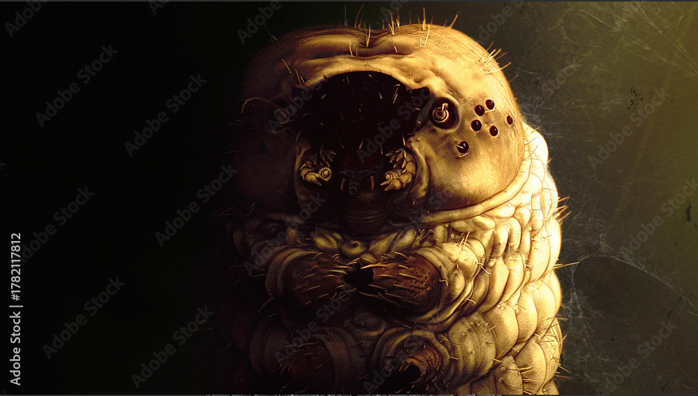 Tableau sur toile Silkworm electron micrograph (SEM) of the head of a silkworm moth caterpillar (B