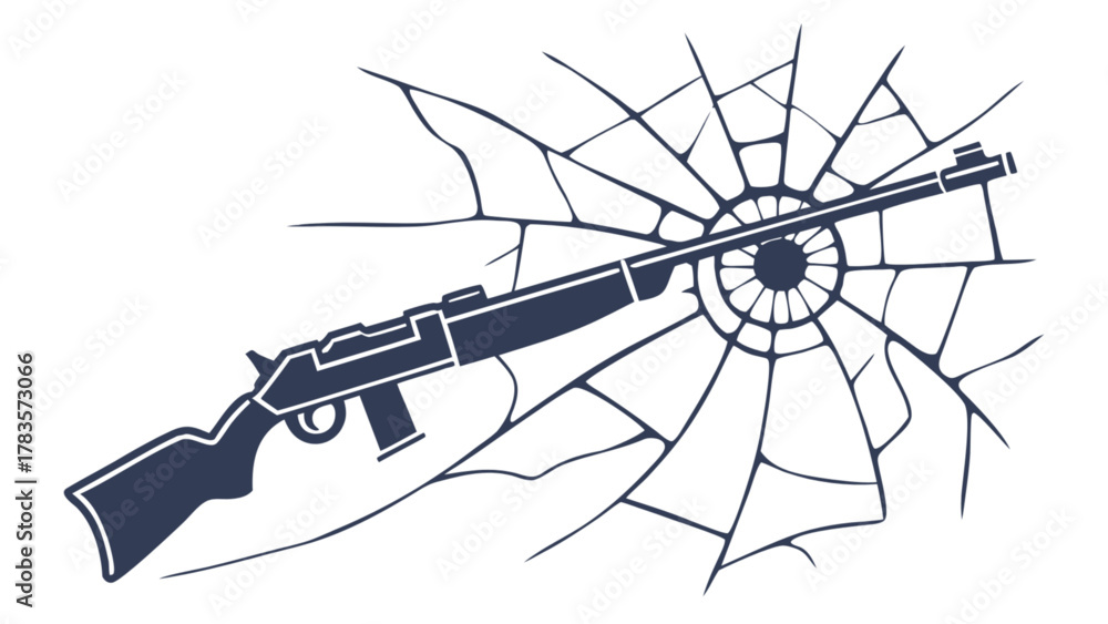 Tableau sur toile Rifle piercing through shattered glass, symbolizing the impact of gun violence a