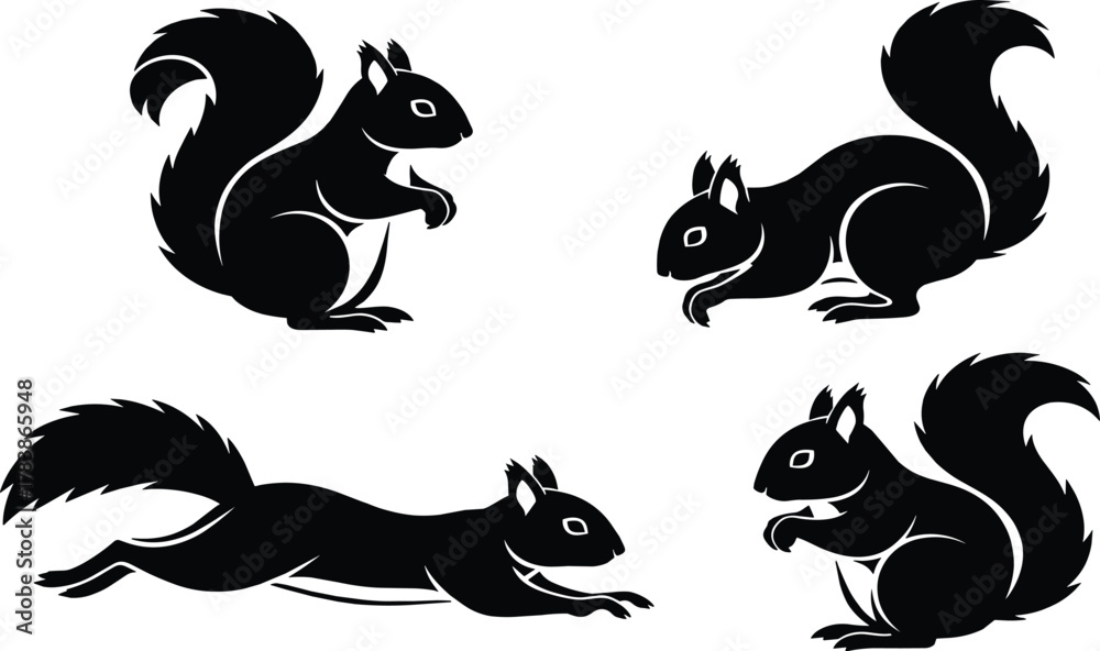 Tableau sur toile Squirrel silhouettes illustration, black vector design, wildlife animal icons se