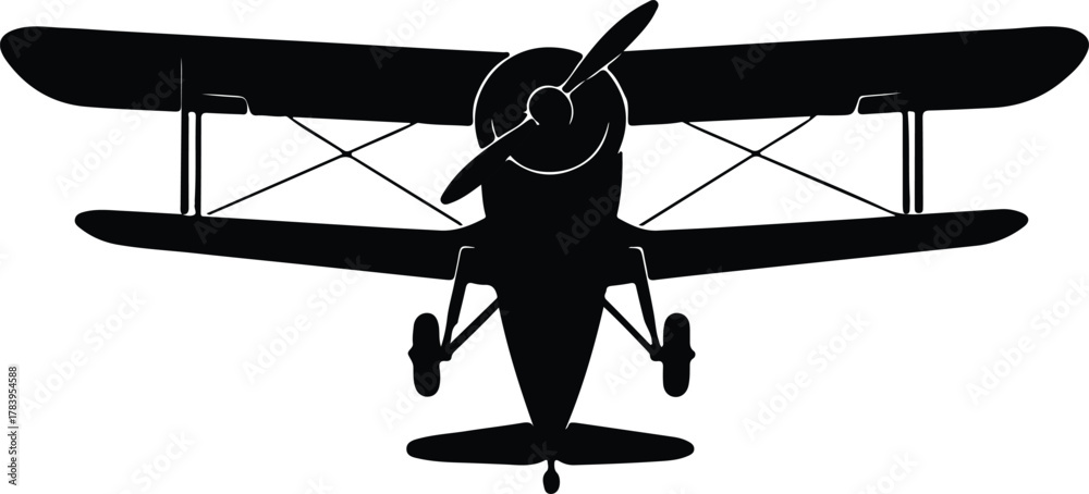 Tableau sur toile Illustrator vintage biplane flying transport aviation retro aircraft Silhouette