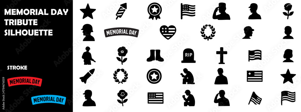 Tableau sur toile Memorial Day Tribute Silhouette Vector Set – Soldier Parade, Remembrance Ceremon