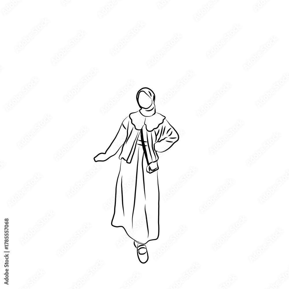 Tableau sur toile Stylish Muslim Woman in Peter Pan Collar Outfit Line Art ​
