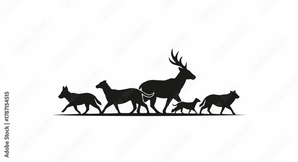 Tableau sur toile Silhouette of a deer family with wolves walking together.