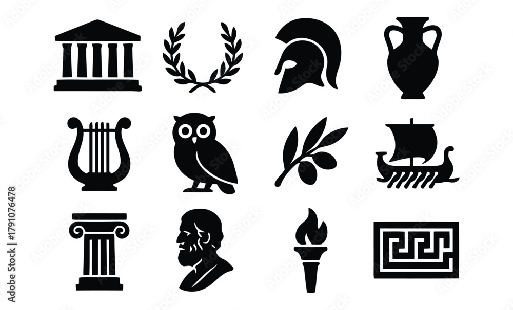 Tableau sur toile greek, ancient, history, culture, temple, column, amphora, helmet, laurel wreath