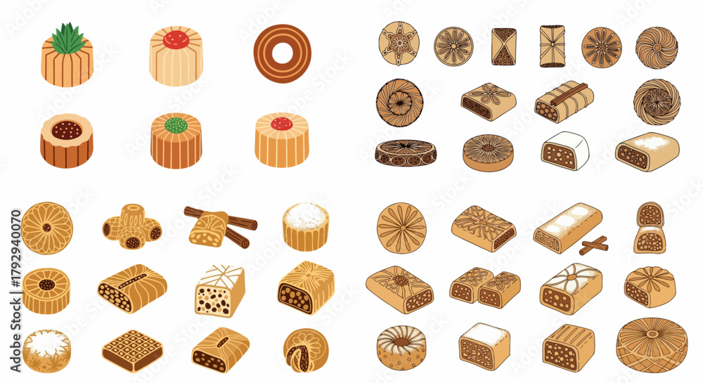 Tableau sur toile Traditional sweets and pastries assortment with transparent background