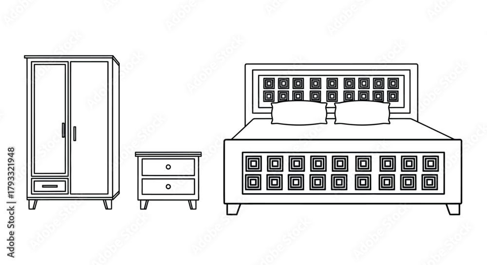 Tableau sur toile Sketch of a bedroom set including a bed wardrobe and nightstand