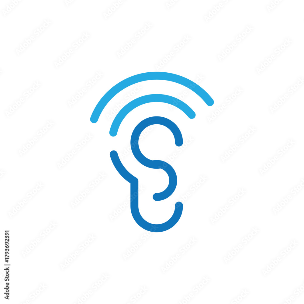 Tableau sur toile the image shows a design of letter S that shapes like an ear with sound waves in blue color that can be used for hearing aids product logo