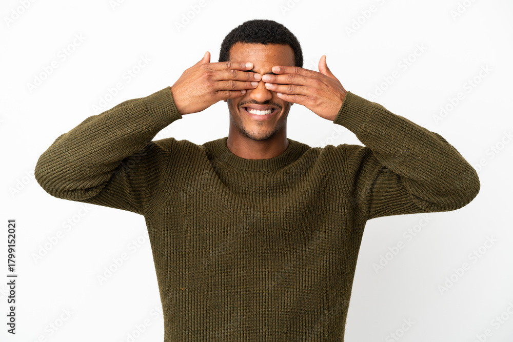Tableau sur toile African American handsome man on isolated white background covering eyes by hand