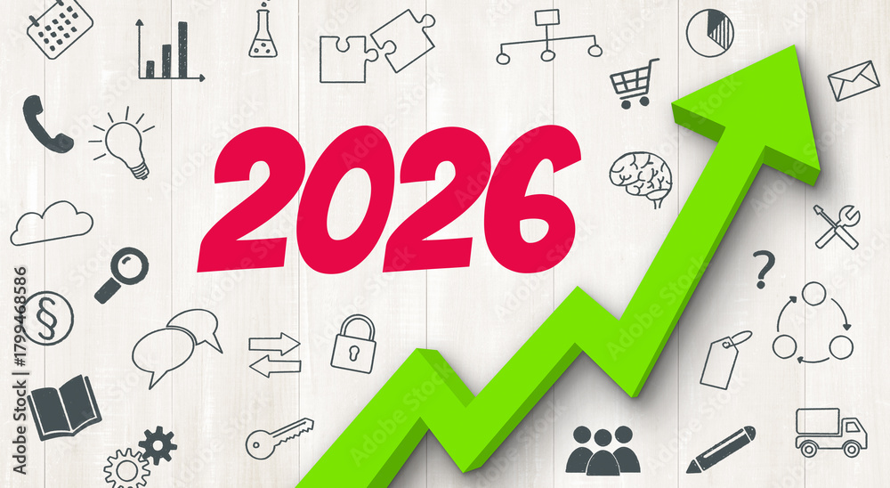 Tableau sur toile Ascending arrow with icons - 2026