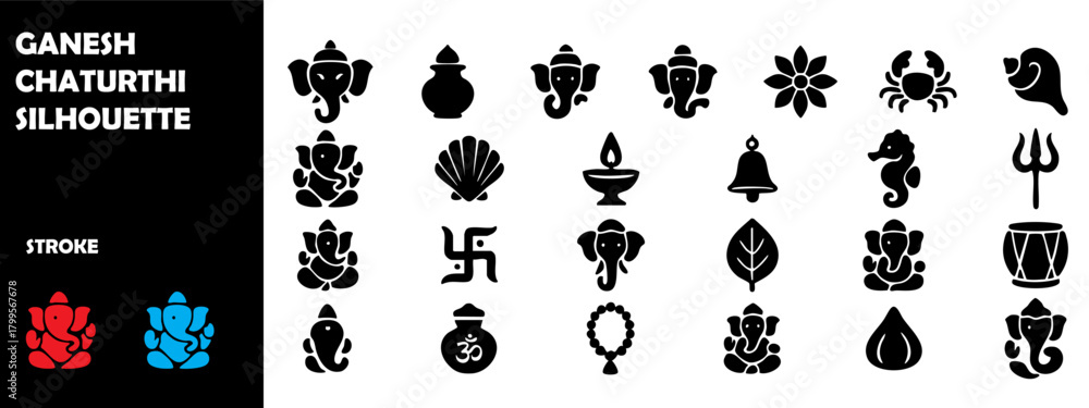 Tableau sur toile Ganesh Chaturthi Silhouette – Lord Ganesha Idol, Indian Hindu Festival Vector De