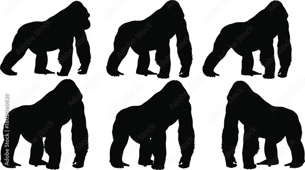 Tableau sur toile Gorilla silhouette vector set, wild animal illustration, strong primate graphics