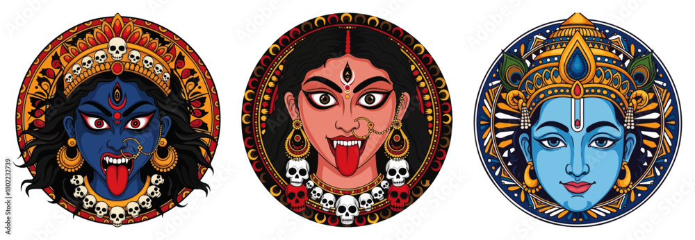 Tableau sur toile Hindu Gods and Goddesses Face Icon Set