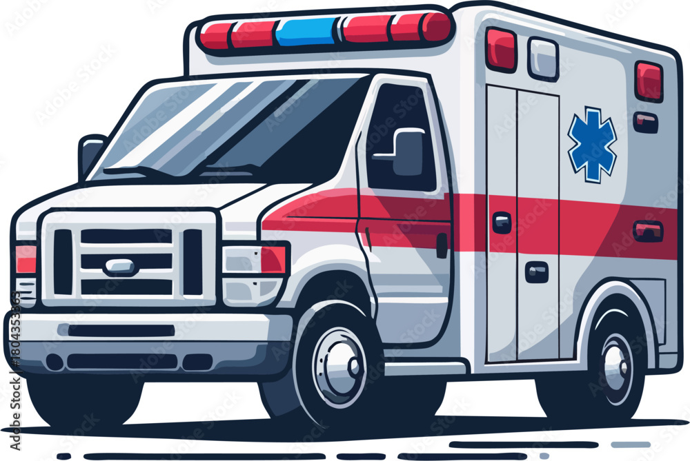 Tableau sur toile Modern Cartoon Ambulance Van Emergency Vehicle Vector Illustration